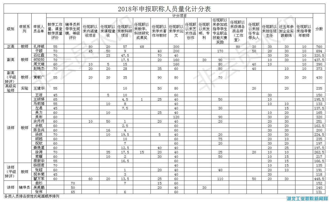 根据《Beat365唯一官方网站专业技术职务任职资格评审办法(试行)》、《Beat365唯一官方网站职称评审量化计分办法(修订)》文件规定,学院职改办(人事处)组织相关职能部门进行量化评分核定,现将孔祥银等31位同志量化评分结果及个人申报推荐评审综合材料一览表予以公示。