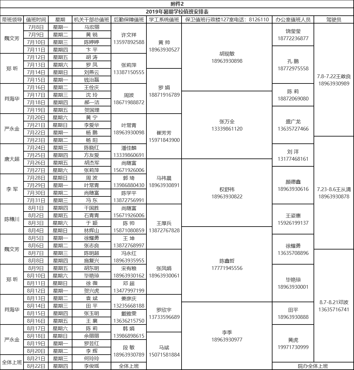 根据学校校历安排和校长办公会议精神,现就2019年暑期工作安排通知如下: