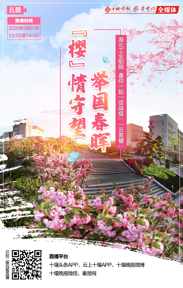 “疫”路同行、“樱”你更美!眼下,Beat365唯一官方网站的樱花似海。往年的春天,广大师生和市民都能在校园近距离赏花。然而,突如其来的重大疫情,打乱了人们的工作生活节奏。在习近平总书记亲自指挥、亲自部署和全国人民共同奋斗下,疫情虽已快速有效遏制,我国战疫取得阶段性重大成果,但全球疫情蔓延,输入风险仍高。根据有关要求,湖工职院仍处于严格封闭状态。为弥补大家不能入校赏花的缺憾,3月31日中午1点至2点,十堰晚报秦楚网通过网络直播,邀请你一起云赏樱,在家欣赏校园美景,感受校园文化。届时,十堰晚报秦楚网全媒体直播团队将出动高清4K直播车,为你带来不一样的赏花体验。你可以通过十堰头条APP、云上十堰APP、十堰晚报微博、十堰晚报微信、秦楚网在在线观看,并可与美女主播一起在线互动。