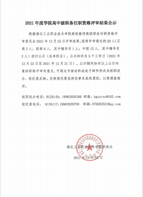 2021年度学院高中级职务任职资格评审结果公示