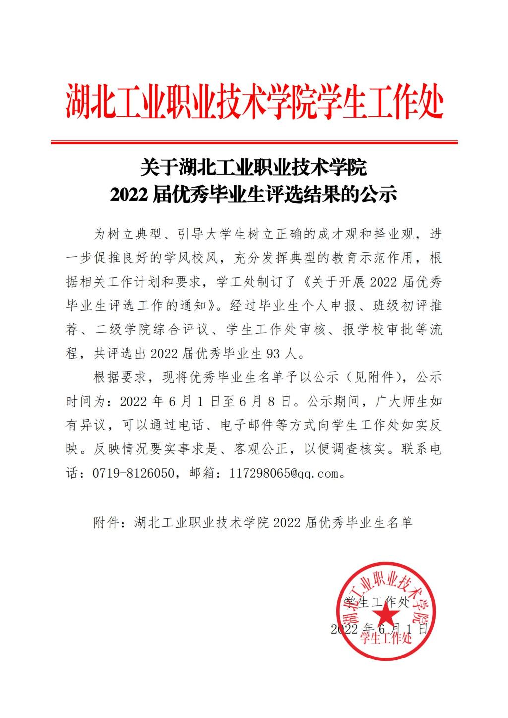 关于Beat365唯一官方网站2022届优秀毕业生评选结果的公示.pdf