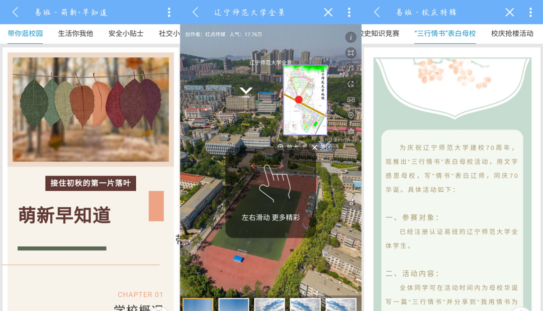 接着,我校学生干部对轻应用快搭的使用以及我校易班活跃指数共建方式进行讲解,为辽宁师范大学学生代表解读了我校易班建设过程中的一些高效做法。我校易班始终秉持:在易班建设工作中,要加强其内涵建设,发挥思想引领作用,开展活动内容形式要多元化,注重挖掘时事热点,加强活动质量,共同创建高质量的“易班”家园。