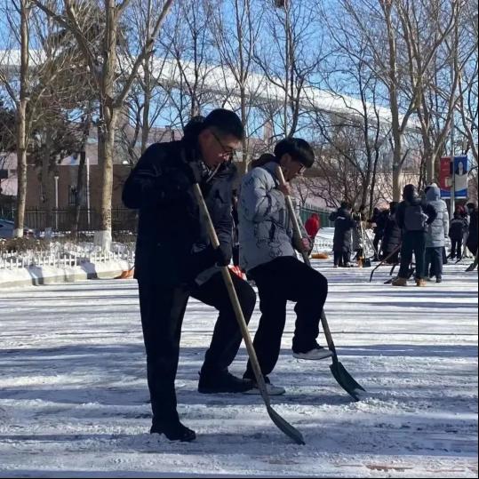 近日,随着气温骤降,沈阳连续下了两场大雪,给扫雪任务增加了难度。15日雪停后,必赢bwin官方网站立刻组织同学进行清扫活动;17日,在四六级考试结束后,同学们进行了第二次扫雪活动。老师和同学们分工有序,配合默契,他们用努力劳动的身影为寒冷的冬日增添了一抹亮色,以奋斗昂扬的姿态彰显使命担当。通过学院师生的努力,校园路面积雪基本都清理完毕,本次扫雪任务圆满完成。