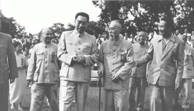 1956年周恩来与马叙伦先生在中南海调研时的照片