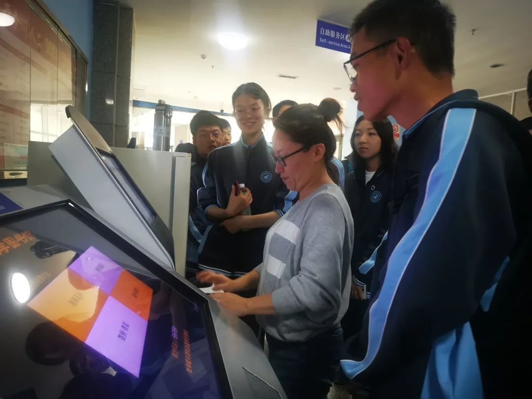 在图书馆老师和学生讲解员的引导下,大家全面了解了我校图书馆的发展历史、馆藏布局、开展服务、入馆须知、借阅规则等,并分组参观了图书借阅室、期刊阅览室等各楼层区域,体验了自助借还平台的使用,并对使用图书馆相关设施中遇到的一些问题,与工作人员进行了互动交流。