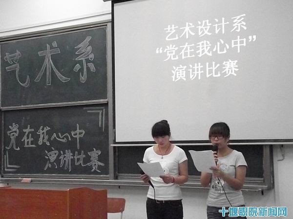 艺术设计系也于5月17日晚在4201教室举行了以“党在我心中”为主题的演讲比赛。二十位选手参加了此次比赛。该系党总支书记计有勤、辅导员李景菊、院朗诵协会主席李扬、系08级学生党员刘雪和黄文等担任了本次比赛的评委。