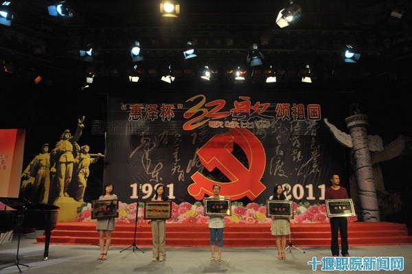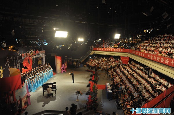 6月10日下午,十堰广播电视台演播大厅座无虚席,歌声嘹亮,由市委宣传部、市直机关工委、团市委主办的“唱响红五月”歌咏比赛精彩上演。经过激烈角逐,我院万木林合唱团在杨华老师指挥下,激情演唱了《没有共产党就没有新中国》、《天路》,获优秀奖。