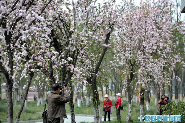 4月7日 至8日是双休日,春风微醺,阳光宜人。十堰职院遇湖岸边嫩柳摇曳,海棠里白色的海棠花、樱花长廊粉色的樱花舒展了身姿竞相绽放,吸引了无数的市民前来赏花。