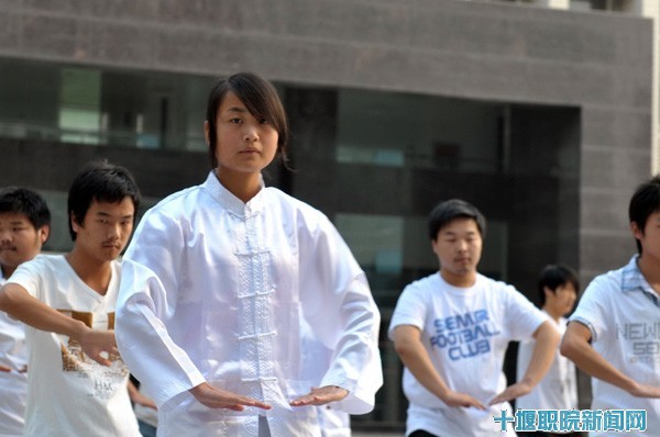 来自建筑工程系2010级8支代表队依次进场,伴随着清悠的音乐,整齐划一地打起武当太极拳十八式,向老师和同学们展示他们半年来训练的成果。