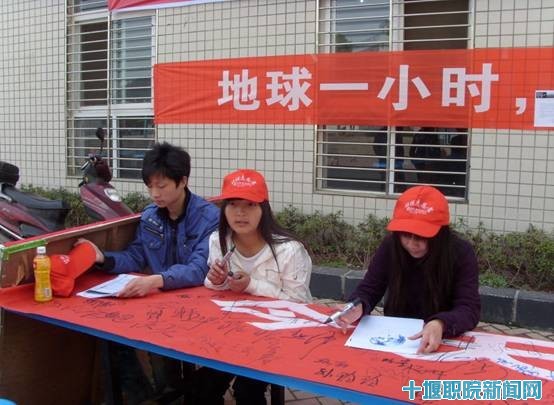 作为这一活动的积极响应者,我院学生创意策划了丰富多彩的活动。院青年志愿者指导中心、环保协会、大学生自律委员会于3月25日中午在学校南、北区食堂举行了“地球一小时”承诺签名仪式活动。