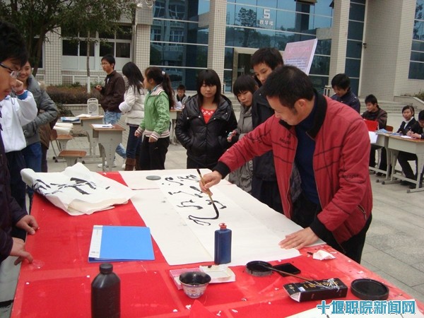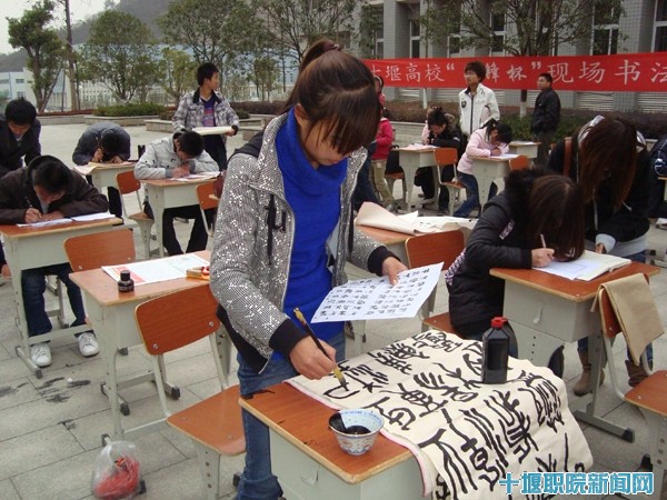 12月11日上午,由院团委主办、院书法协会承办的“十堰市高校首届‘玉锋杯’书法比赛”在我院举行。来自湖北汽车工业学院、湖北医药学院、十堰玉锋书画培训学校以及我院共110位书法爱好者参加了此次比赛。