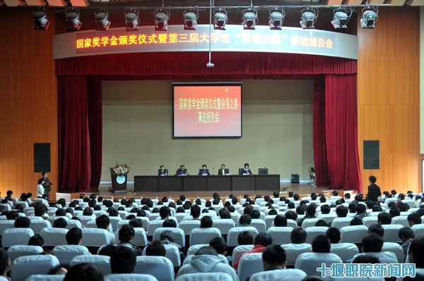 副院长张德新宣读了《教育部关于2009—2010学年度国家奖学金获奖者的公告》,副院长刘玉敏宣读了《关于表彰第三届大学生“自强之星”、第四届“助学政策 助我成才”获奖征文的决定》。
