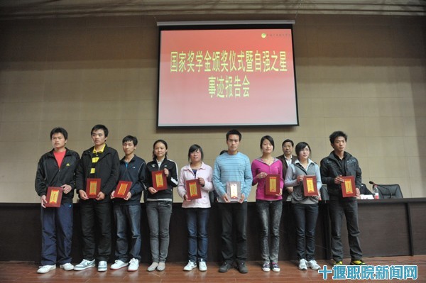 4月21下午,院会议中心座无虚席、气氛热烈,学院在此隆重表彰国家奖学金获得者、“自强之星”及“助学政策 助我成才”征文获奖同学,我院10名“自强之星”做了感人肺腑的事迹报告。