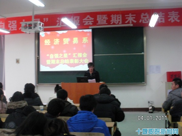 1月4日,经济贸易系举行“自强之星”汇报会暨期末总结表彰大会。院长助理、学工处长肖海华、院资助中心主任陈桂巧、院团委副书记张玲、经济贸易系党总支书记马超、副书记王俐凤和全体辅导员老师出席大会。系团总支学生会全体干部和奖、助学金获得者共二百余名学生参加大会。