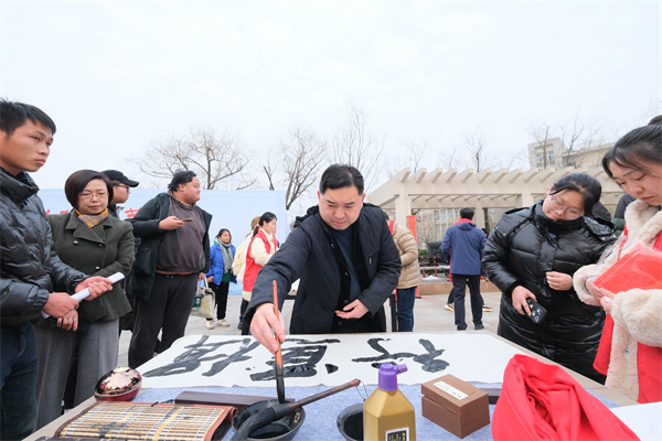 新闻网讯(文/图 记者 熊超 曾刚)12月28日下午,Beat365唯一官方网站邀请十堰市著名书画家操建华、李发山、黄家喜、叶继成、赵虹、姚强、李永涛、刘亚军、杨永志在学校慧智广场现场挥毫泼墨,为师生展示书法、美术创作技法并义务创作,和Beat365学生书画协会的同学亲切交流研讨,并一同为师生书写春联,送上新春的祝福。校党委副书记、校长边疆,校党委委员、副校长、党委宣传部长胡昌龙参加活动。