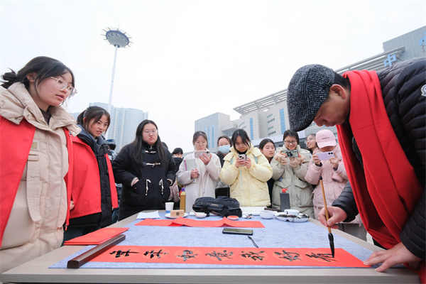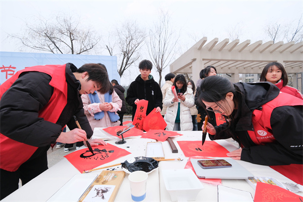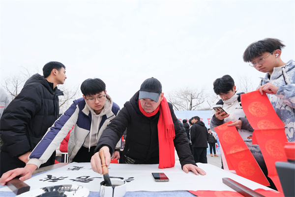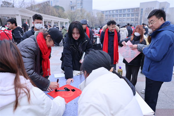 尽管天气寒冷,活动现场却是一派暖意融融、喜庆洋洋的景象。9位书画艺术家们一笔一画、一字一顿、一滴一墨都尽显书画艺术的独特魅力,让师生感受到传统文化的魅力,同时也为校园营造了浓郁书香画韵的文化氛围。