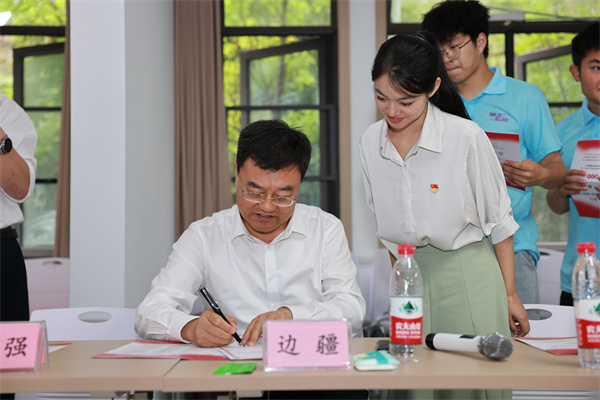 会谈结束后,毕业生纷纷主动邀请校长边疆签名留念。领导老师与毕业生共进午餐、共叙别情,为毕业生送去最真挚的祝福与最美好的期许,现场气氛轻松活跃,大家在欢声笑语中合影留念,留下湖工职院独有的青春记忆。