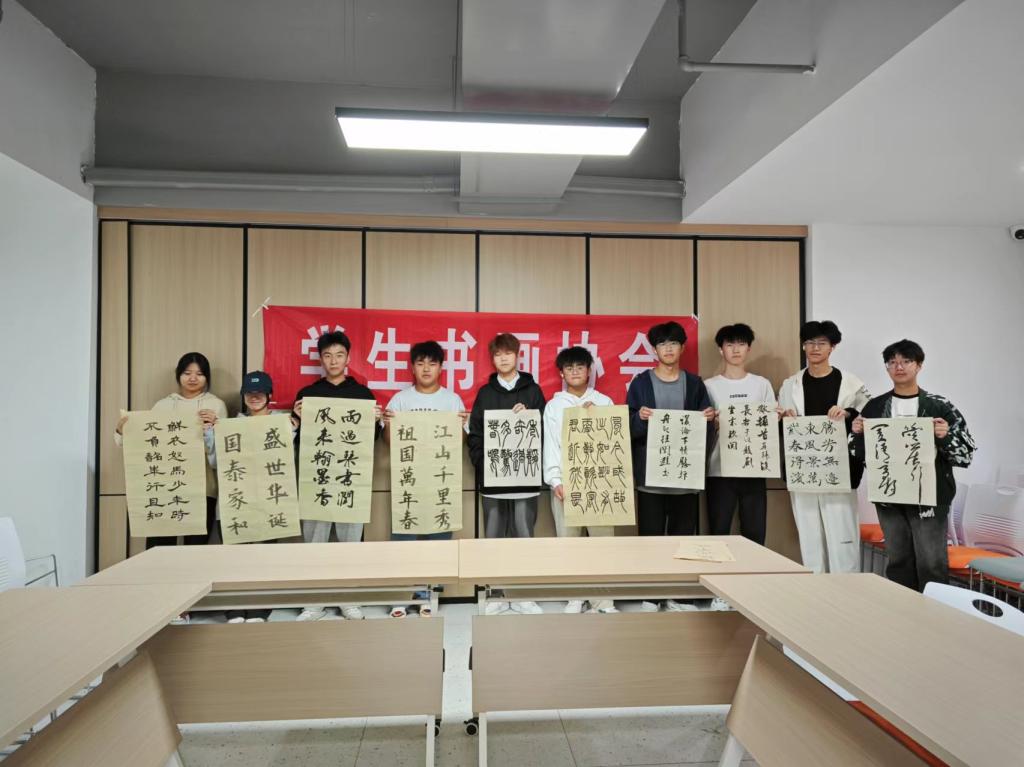 学生书画协会“笔舞国庆 墨韵中华”书法交友会活动现场,书画爱好者们齐聚一堂以笔墨传情,丹青颂中华,每一幅作品都凝聚了同学们对祖国的无限热爱与美好祝愿;风华诗社“诗意庆华诞”诗歌竞赛活动中,同学们以饱满的热情、真挚的情感,朗诵一首首脍炙人口的爱国诗歌,以诗歌筑梦,赞盛世华章,献礼新中国成立75周年。
