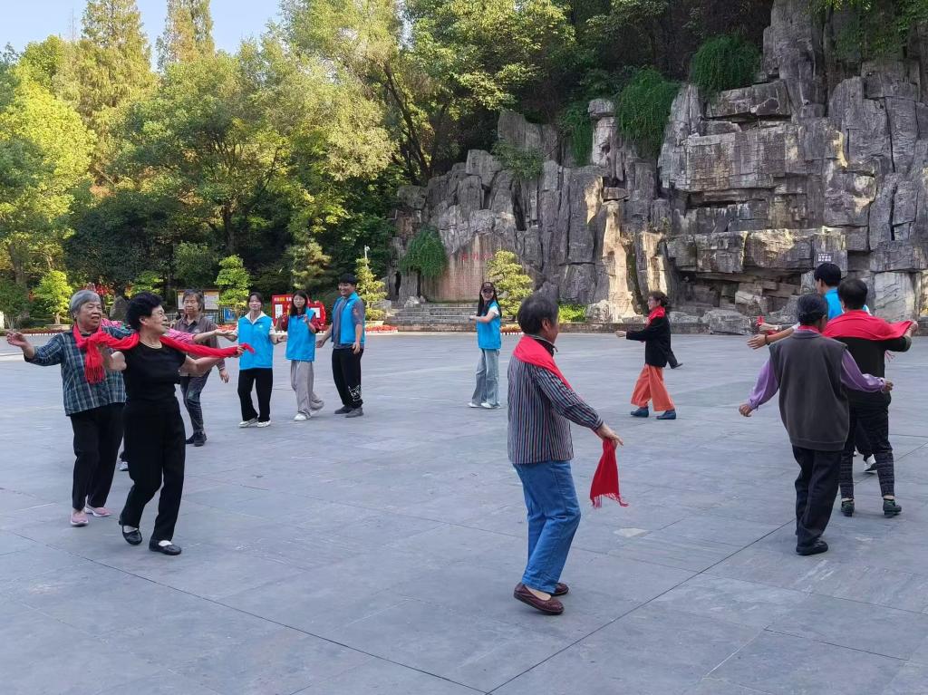 旅游商贸学院晨曦助老服务队的志愿者们一大早来到活动现场,身着统一服装,脸上洋溢着热情的笑容。他们精心准备了流行舞《水韵江南》、古典舞《小城谣》、独唱《光阴的故事》等节目。动听的音乐、优美的舞蹈,让老人们沉浸在欢乐的氛围中。现场气氛热烈,老人们的脸上绽放出幸福的笑容。