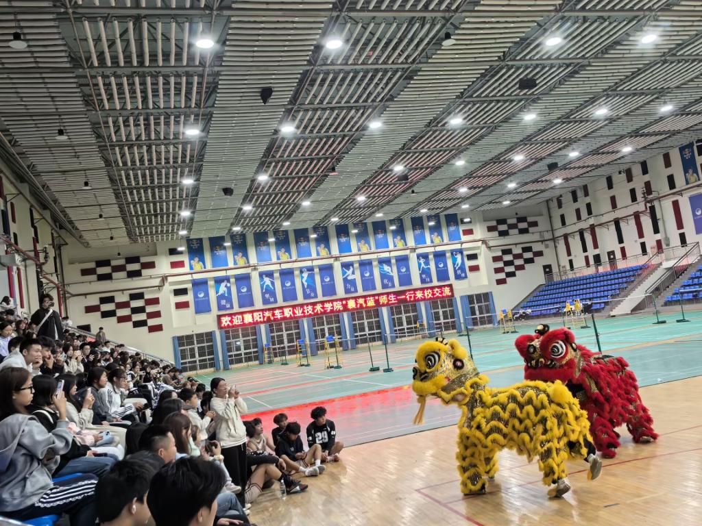 座谈会后,襄汽职院非遗学生社团在校体育馆进行了舞狮表演,为学生篮球赛加油助阵,得到了现场师生的一致好评。
