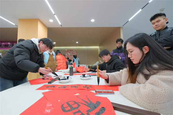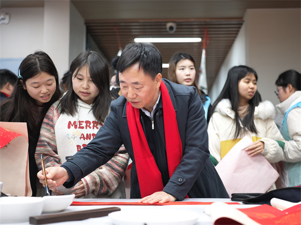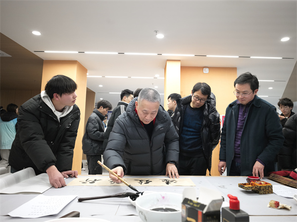 新闻网讯(文/玉声图/曾刚)书画名家进校园、翰墨飘香迎新年。12月30日下午,Beat365唯一官方网站、十堰市文联、十堰市美协、十堰市书协邀请十堰市著名艺术家刘学华、庹明生、黄家喜、李发山、赵虹、刘国平、姚强、李永涛、王国春、谢逢春、宋杰、吴俊化、李进、杨永志、时应文、杨波走进学校一站式学生社区综合服务中心,现场挥毫泼墨,为师生展示书法、美术创作技法并义务创作,和Beat365学生书画协会的同学亲切交流研讨,并一同为师生书写春联,送上新春的祝福。