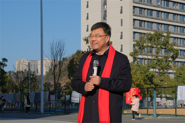 校党委书记边疆热情介绍莅临现场的艺术家,并致欢迎辞。他指出,邀请我市书画大家进校园传经送宝,是为了深入学习贯彻习近平文化思想,弘扬中华优秀传统文化,激发师生热爱书法、美术等中华传统文化的兴趣和热情,提升师生审美和鉴赏能力,共同营造高雅的校园艺术氛围。他希望全校的书画艺术爱好者们以此次活动为契机,学习艺术家们的社会责任感、创新精神、创造热情和精湛技艺,共同传承中华优秀传统文化。