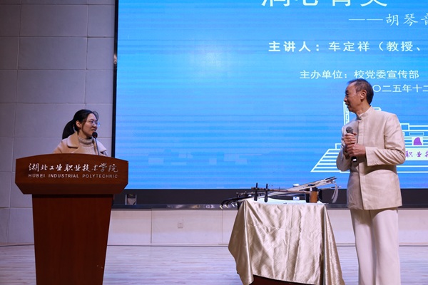 从基础演奏技巧到作品艺术解读,车教授的分享兼具专业性、通俗性与感染力,既普及了传统民乐知识,也让师生们沉浸式感受到中华优秀传统文化的深厚底蕴,增强了文化自信。互动环节,现场师生围绕“已考取二胡十级,如何加强右手的控制能力?”“如何在演奏中融入感情”等问题踊跃提问,车教授耐心解答,让艺术的传递在双向交流中愈发深刻。