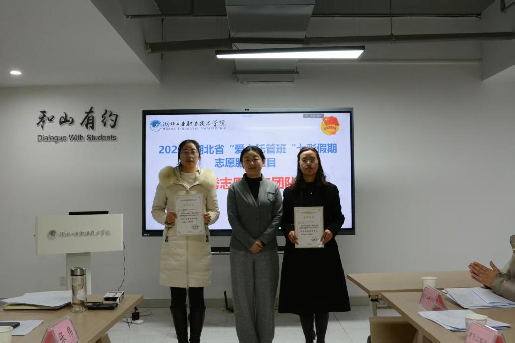 会议同期举行了2025年度青年志愿服务工作先进典型评选活动,与会校领导向2025年湖北省“爱心托管班”七彩假期“优秀志愿服务团队”、湖北省青年志愿服务“社区计划”竞赛获奖团队师生代表颁发荣誉证书。